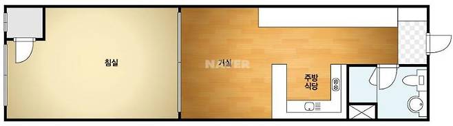 실 평수가 약 10평 정도인 직사각형 구조의 원룸형 오피스텔이에요. 슈퍼싱글 침대와 책상을 놓고도 실생활 공간을 넓게 사용할 수 있는 곳이랍니다.
