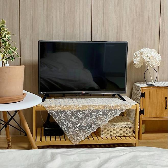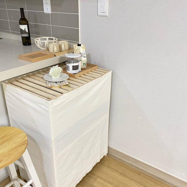 베이지 색상의 천으로 가려주었더니, 훨씬 깔끔해 보여 만족스럽네요.