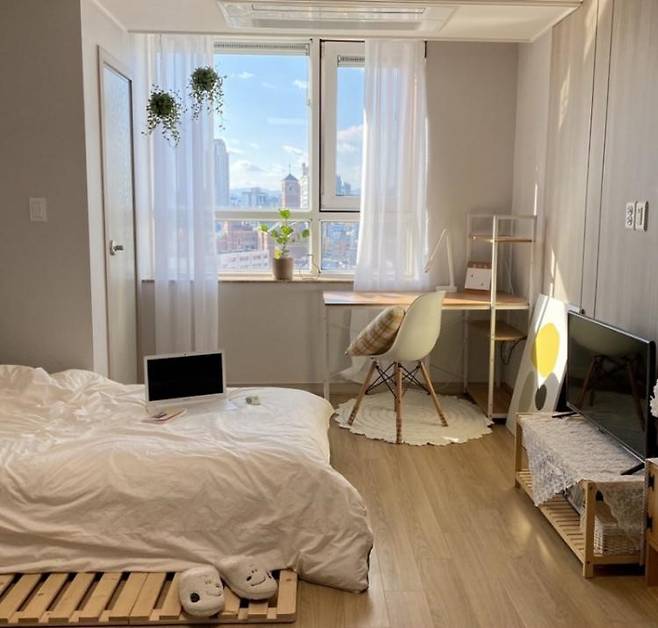 안녕하세요! 화이트&우드 인테리어를 좋아하는 자취 5년 차 쭈앙입니다. 오피스텔에서 지낸 지는 올해로 딱 1년이 되었네요. 지급 살고 있는 집은 노을과 밤하늘 보는 걸 좋아하는 저에게 안성맞춤인 집이라, 참 마음에 들었어요.