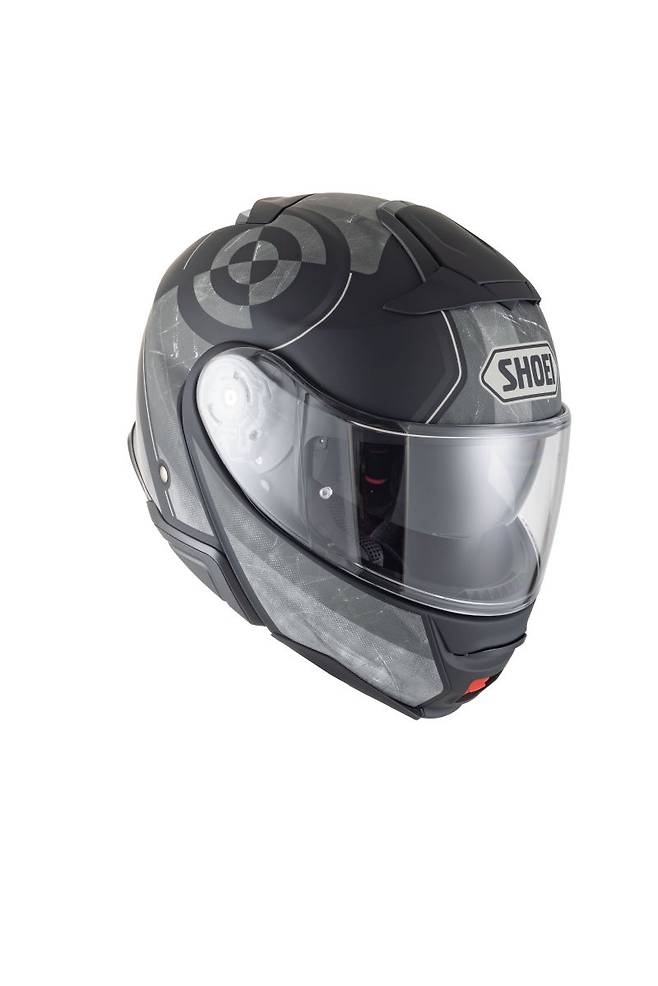 쇼에이의 2세대 시스템 헬멧 네오텍은 장거리 어드벤처 라이딩을 위해 편의성과 공기역학적 특성이 강조된 헬멧이다. 실드를 포함한 페이스 커버를 이중으로 고정한다. 무광 그레이 컬러에 거친 표면을 표현해 모던한 스타일을 완성했다. 완전히 올린 1단 잠금 위치에서 좀 더 들어 올리면 2단 잠금이 적용되어 페이스 커버가 떨어지는 것을 방지한다. 볼 패드를 제거하면 블루투스 통신 장치의 스피커와 붐 마이크를 위한 자리가 준비되어 있다. 풍절음을 줄이기 위해 새롭게 설계된 볼 패드를 적용해 헬멧과 내피 사이의 틈새를 덮었다. 전용 핀락은 헬멧과 함께 동봉되어 있다.