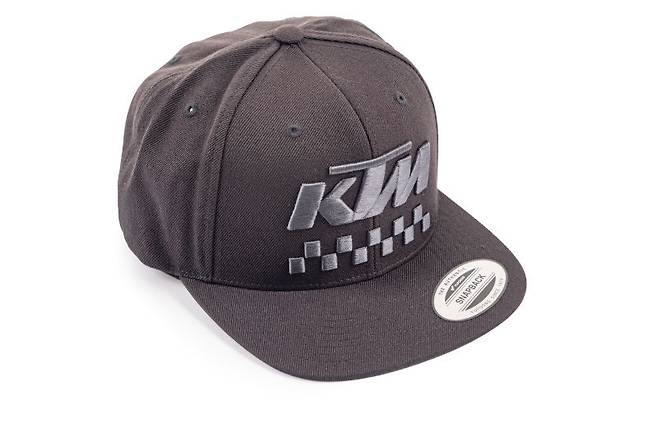올 블랙 컬러에 KTM 로고와 체커 패턴 자수가 포인트가 되는 스냅백 스타일 캡. KTM의 오렌지 컬러가 부담스럽게 느껴졌던 라이더라면 안성맞춤이다. 로고와 체크 패턴을 자수로 적용해 고급스러움을 더했다.