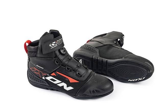 CE 레벨 2 인증을 받은 익숀의 어반 스타일 라이딩 슈즈. 메탈 케이블을 원터치로 잠그고 풀 수 있는 ATOP 시스템을 적용해 신고 벗기 편하다. 방수기능을 갖추고 있어 폭넓은 날씨에 대응한다. 안전을 위해 발뒤꿈치와 복사뼈 그리고 발목에 보호대를 삽입했다. 시프트 가드로 고무패드를 덧대어 정확한 변속과 신발의 마모를 방지한다.