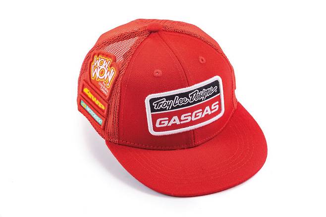 가스가스 레이스팀의 어패럴 디자인을 담당하고 있는 ‘트로이 리 디자인’에서 디자인한 트러커 스타일 스냅백. 현재 가스가스 팩토리 레이스 팀을 지원하는 후원사의 로고 패치들이 붙어있다.
