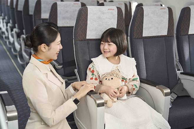 [아이와 승무원 (제주항공 제공=연합뉴스)]