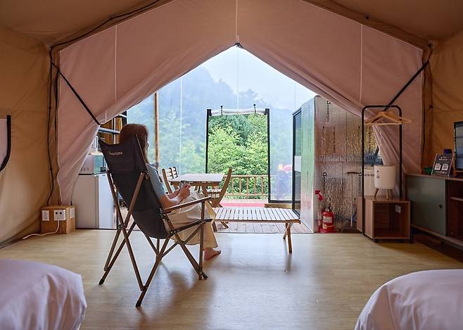 가리왕산 화봉 정상에는 프리미엄 객실인 마운틴하우스와 숲 속에서 즐기는 최고급 글램핑장인 문학인의 마을, 철인의 마을 또한 준비돼 있어 자연에서의 진정한 힐링을 즐길 수 있다.