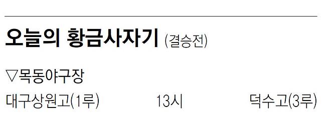 모교 사령탑이 된 2007년 이후 황금사자기를 이미 세 차례(2013, 2016, 2017년) 차지한 정윤진 덕수고 감독은 “두 팀 모두 투타 밸런스가 좋은 만큼 결승전은 한두 점 차 승부가 되지 않을까 싶다. 상대 테이블 세터를 묶는 데 집중할 것”이라고 말했다.