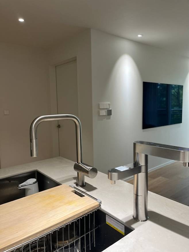 그로헤 수전은 슈퍼 스틸 컬러와 ㄷ자 모양이 너무 맘에 들어 독일 직구로 구입했구요. 퓨리케어 정수기도 같은 컬러로 설치했습니다. 거실에서 왔다 갔다 하며 물 마시기 너무 편해서 좋아요.
