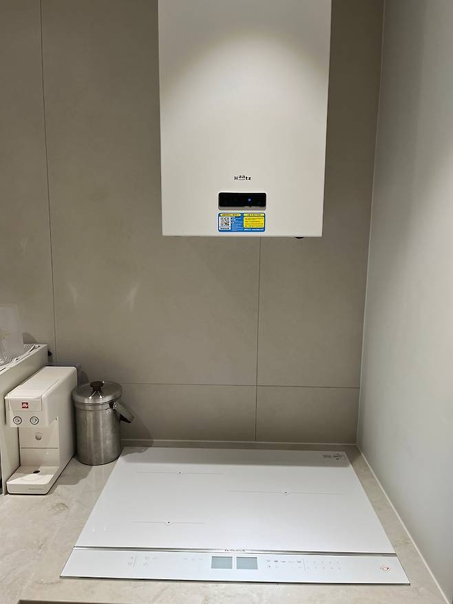무엇보다 기껏 예쁘게 공사해놓은 공용부 벽에 예쁘지 않은 홈 컨트롤러와 인터폰이 있는게 마음에 안 들었는데 저희 아파트는 구축이라 현관-세대가 연결된 인터폰이 없어서 굳이 화면이 있는 인터폰을 설치할 필요가 없더라구요. 딱히 단지 차원에서 설치 예정도 없었구요. (이 부분은 아파트 별로 잘 알아보시는 것이 좋습니다.)