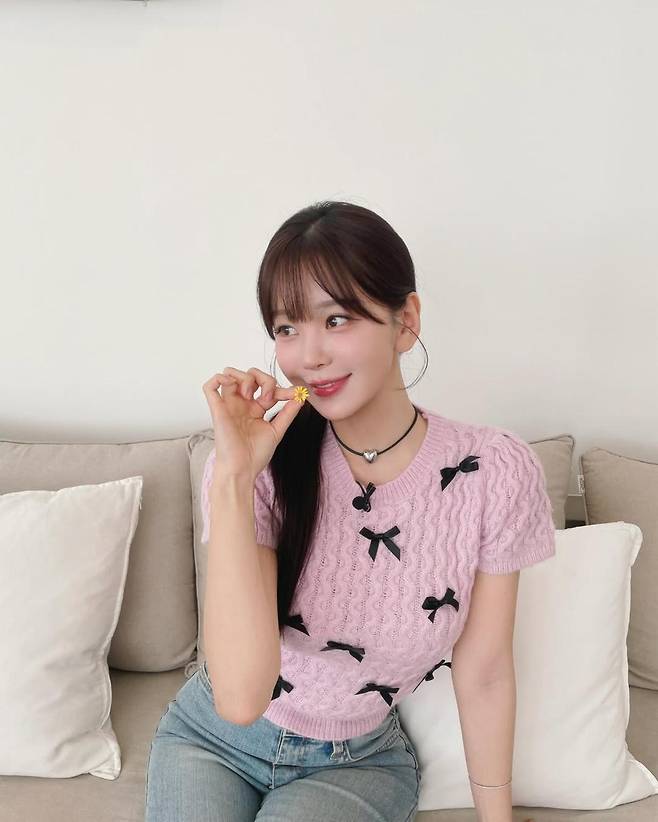 공개된 사진 속 김윤희는 연핑크 케이블 니트에 작은 블랙 리본 장식이 더해진 독특한 디자인의 아이템을 선택했다. 여기에 심플한 데님 팬츠를 매치해 내추럴하면서도 세련된 분위기를 연출했다. 블랙 초커 목걸이와 얇은 팔찌를 더해 감각적인 스타일링을 완성한 모습이다.