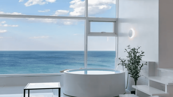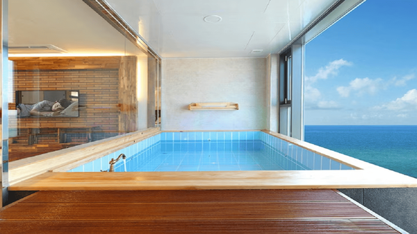객실에는 프라이빗 수영장이 마련되어 있어 날씨와 관계없이 이용이 가능한데요. 따뜻한 미온수 풀에서 바다를 바라보며 휴식을 취하면 여행의 만족도가 더욱 높아집니다. 넓은 창문을 통해 들어오는 햇살과 바다 풍경이 어우러지며 감성적인 분위기를 만들어 주는 것도 이 숙소의 장점입니다.