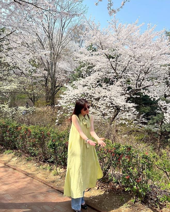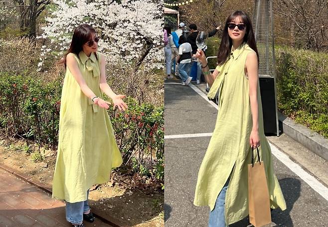 한선화는 노란색 원피스를 착용해 청순하고 화사한 패션을 선보였습니다.