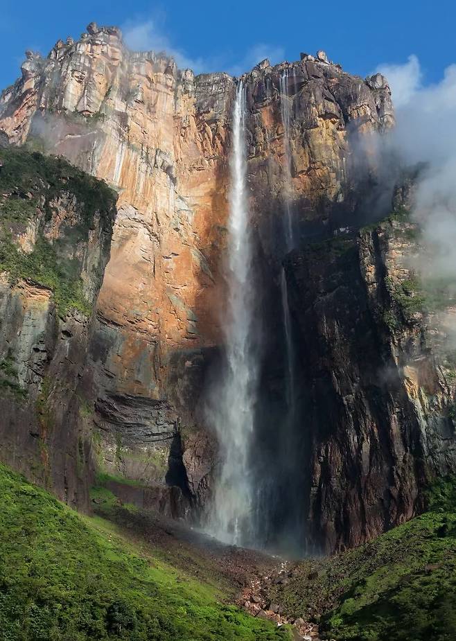 앙헬 폭포는 테푸이(Tepui)라 불리는 고원의 평평한 산 정상에서 흘러내립니다. 정상은 늘 구름에 덮여 있어, 물은 비와 안개에서 태어나 그대로 낭떠러지로 떨어지죠. 때문에 마치 하늘에서 곧장 떨어지는 듯한 착각을 주는 것입니다.