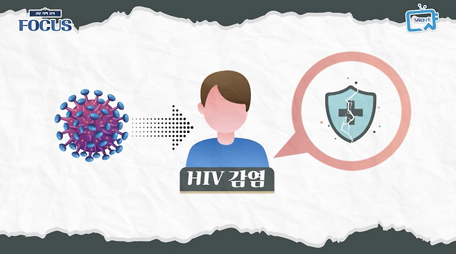 바꿔 말하면 에이즈는 HIV 감염으로 인해 면역세포가 파괴되어 면역기능이 떨어진 상태를 말합니다. 하지만 HIV 감염 환자가 다 에이즈 환자가 되는 것은 아니고요.