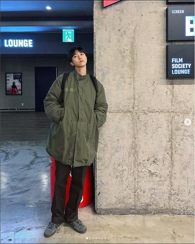 그레이톤으로 완성한 황민현의 코트 스니커즈 스타일링도 참고해하면 좋을 것 같아요!