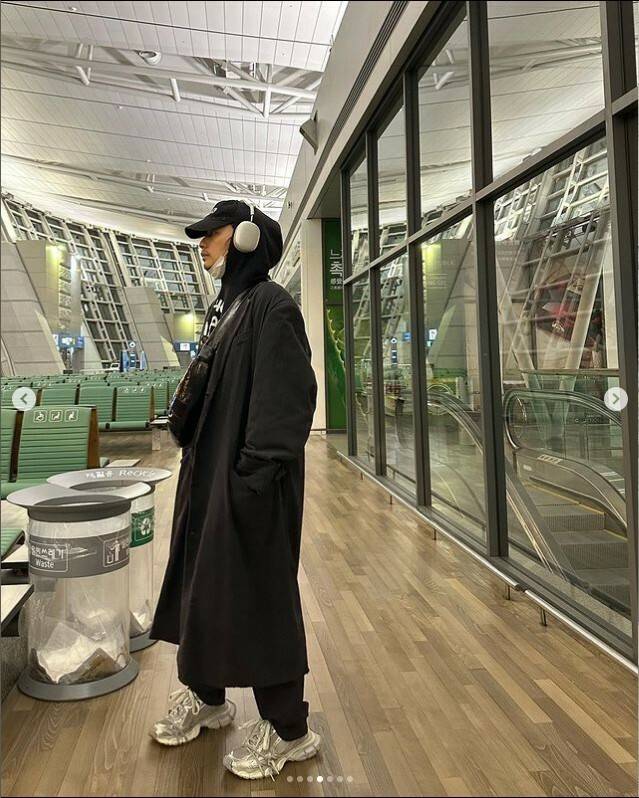 이동휘는 후드티 + 롱코트에 볼드한 스니커즈로 포인트를 살려주었고