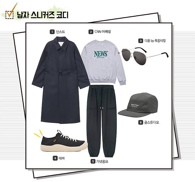 살펴보고, 몇가지 남자 운동화 코디도 준비해보았습니다.