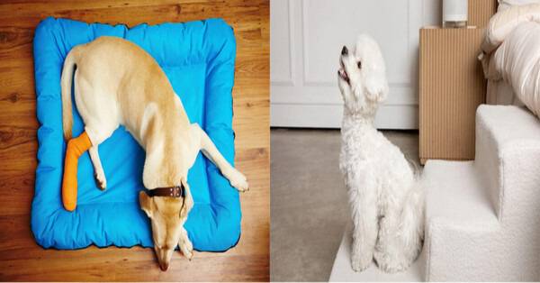 높은 곳에 오르내릴 때 사용하는 강아지 전용 계단은 슬개골 탈구 예방에 도움이 됩니다.