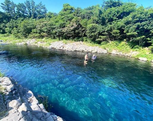 제주 강정천은 관광객들보단 제주 도민들이 찾는 제주도의 숨은 스노쿨링 명소입니다. 특히 한라산 천연 암반수가 흐른다는 강정천은 서귀포 식수 70%를 공급할 정도로 맑은 물을 자랑해 각종 천연기념 동식물을 만나볼 수도 있는 곳인데요.