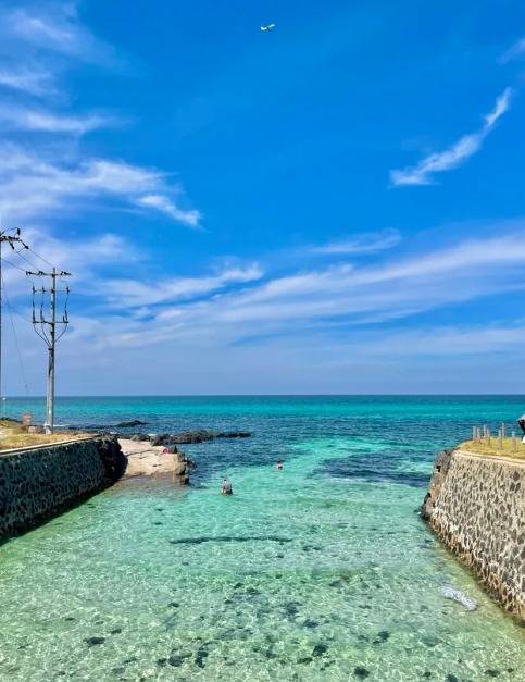 얕은 수심에 아이들과 함께 스노쿨링을 즐기기도 좋으며 근처 선인장 군락 산책로와 풍력발전기와 함께 이루워진 모습이 이국적이라 어느 해외 휴양지 부럽지않은 제주 스노쿨링 명소입니다.