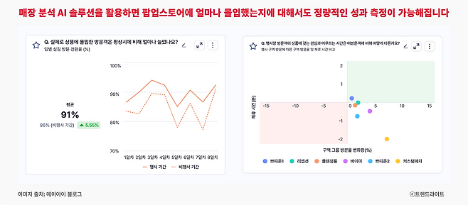 이런 방식의 분석은 특히 팝업스토어처럼 ‘구매’보다는 ‘브랜드 경험’에 초점을 둔 공간에서 더 큰 효과를 발휘합니다. 단순 매출 수치만으로는 성과를 판단하기 어려운 만큼, 고객이 어떤 콘텐츠에 어떻게 반응했는지를 세밀하게 파악할 수 있는 정교한 피드백 구조가 절실하니까요.