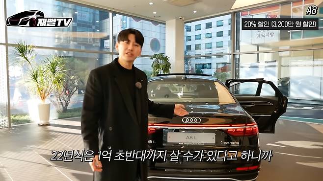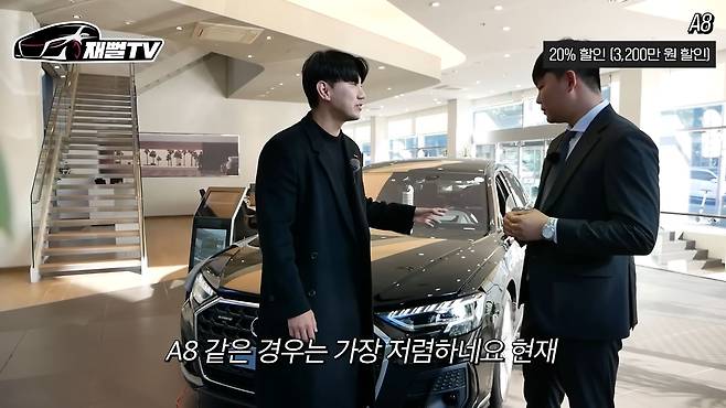 지금 각 자동차 매장들이 진짜 할인 폭탄을 떨어뜨리고 있어요. 일단 아우디 정보들을 알려드리고자 이렇게 또 매장에 나오게 됐습니다. 먼저 만나볼 차는 신형으로 바뀐 A8인데, 이 차는 20% 할인된다고 합니다. 이게 원래 1억 6천이니까 20%면 3,200만 원 정도네요. 그러면 1억 6천 짜리를 거의 1억 2천대에 살 수 있는 거네요.