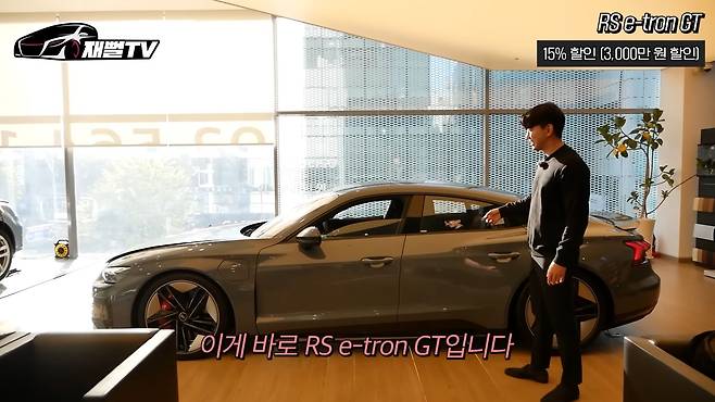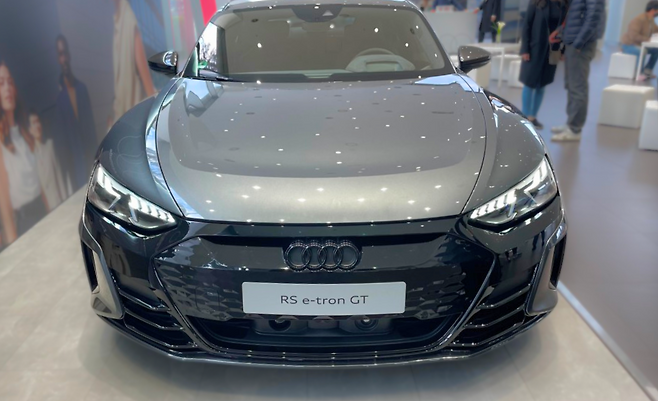 이게 바로 RS e-tron GT인데요. 제로백 3초대의 제일 빠른 차입니다. 제가 세단류만 많이 타다 보니까 이런 스포츠성으로 생겼는데, 뒷좌석까지 있는 걸 보면 혹해요. 이게 뒷자리에도 탈 만한 차거든요. 그리고 타이칸보다 좀 더 넓어요. 그리고 외부 라인을 보면 진짜 뭔가 살짝 슈퍼카 느낌도 나요. RS e-tron GT 가격은 2억 600만 원인데, 할인이 한 15% 들어간다고 해요. 그러면 할인가는 1억 7,500만 원 정도 되겠네요.