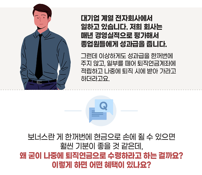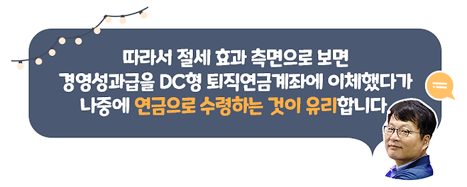 네. 맞습니다. 근로자는 경영성과급을 DC형 퇴직연금계좌로 받으면 세 부담을 줄일 수 있습니다.