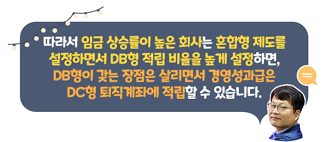 DB형에 99%를 적립하고, DC형에 1%만 적립하는 방식으로 혼합형 제도를 설계하는 회사도 있습니다.