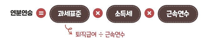 이렇게 퇴직급여를 근속연수로 나누면(연분) 과세표준이 줄어들기 때문에 낮은 세율을 적용받고, 산출되는 세액도 줄어듭니다. 이 같은 방식으로 세금을 산출한 다음에 다시 근속연수를 곱해서(연승) 최종적으로 납부할 세금을 정한다고 해서 ‘연분연승’이라 합니다.