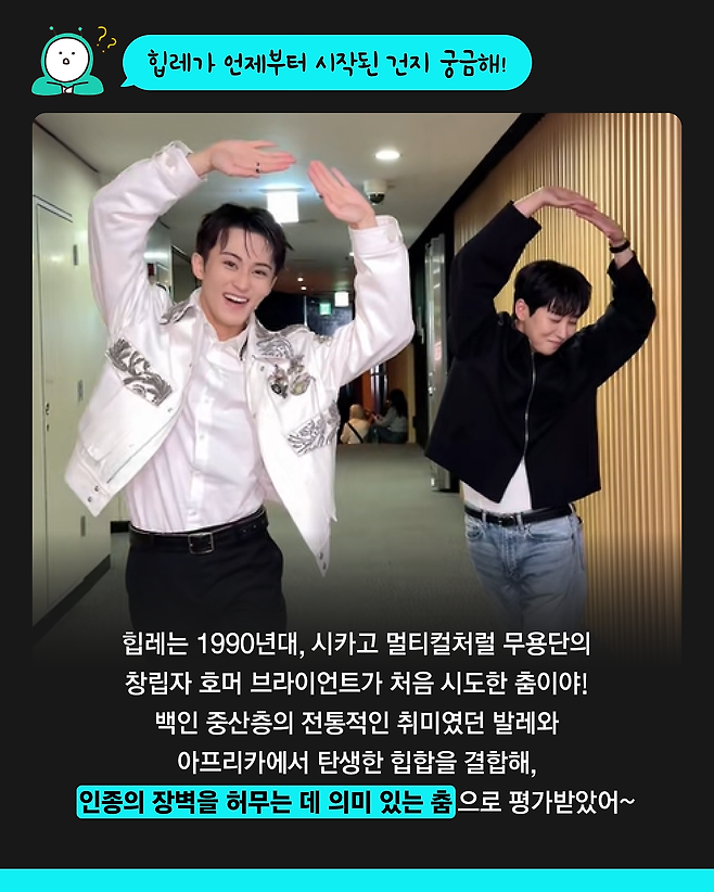 힙합과 발레를 합쳐 ‘힙레’라고 불리는 이 춤은 ‘포앵트’ 등의 움직임을 통해 발레와 자유롭게 감정을 표현하는 힙합의 특징을 결합한 춤입니다.