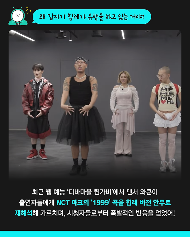 최근, NCT 마크의 ‘1999’ 노래가 ‘디바마을 퀸가비’에서 ‘힙레 버전’으로 재해석되면서 폭발적인 반응을 이끌었습니다.