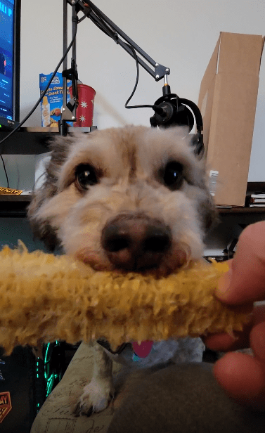 강아지의 눈빛은 먹는 동안에도 자주 주인을 향해 올라갑니다. 마치 “잘 골랐어, 오늘도 최고야”라고 말하듯. 무심한 듯 옥수수에 집중하면서도, 가끔은 눈을 맞추고 꼬리를 더 크게 흔드는 그 반응은 단순한 배고픔을 넘은 기대가 충족되는 기쁨의 몸짓입니다.