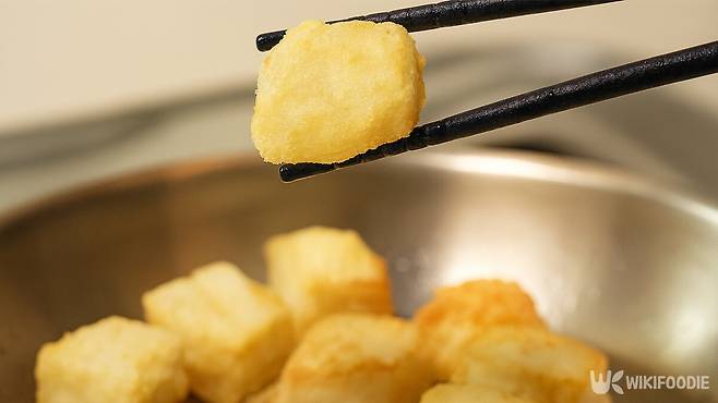 - 두부는 수분을 충분히 제거해야 바삭한 식감이 유지된다.