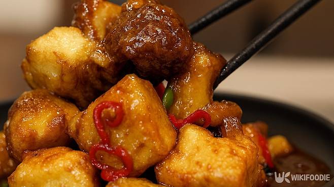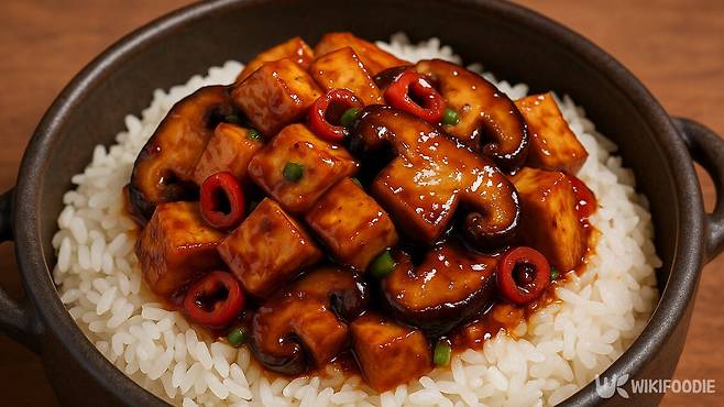 구워둔 두부와 표고버섯을 소스에 넣고 중불에서 서서히 볶는다. 이때 센불을 사용하면 소스가 금방 졸아들어 짜질 수 있으므로 불 조절이 중요하다. 소스가 재료에 고르게 스며들면 완성이다.