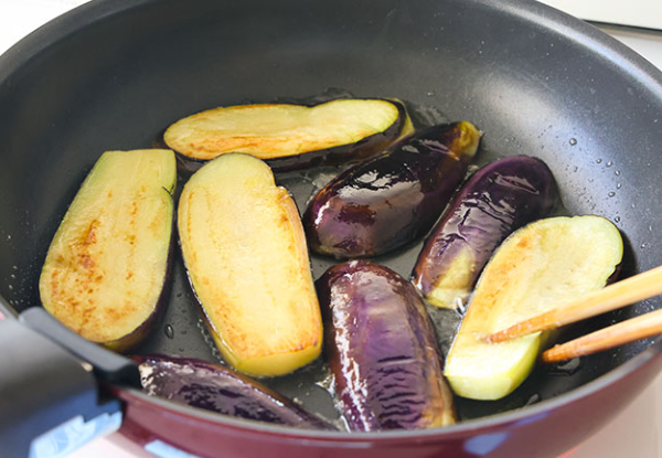 또한 길게 자르면 단면적이 넓어져서 열이 고르게 들어가고, 나중에 양념을 발랐을 때 고르게 흡수된다. 가지는 수분이 많기 때문에 모양을 유지하면서도 내부까지 양념이 잘 배어들 수 있도록 형태와 두께를 계산해야 한다. 그냥 자르기만 해서는 절대 맛있는 결과물이 나오지 않는다.