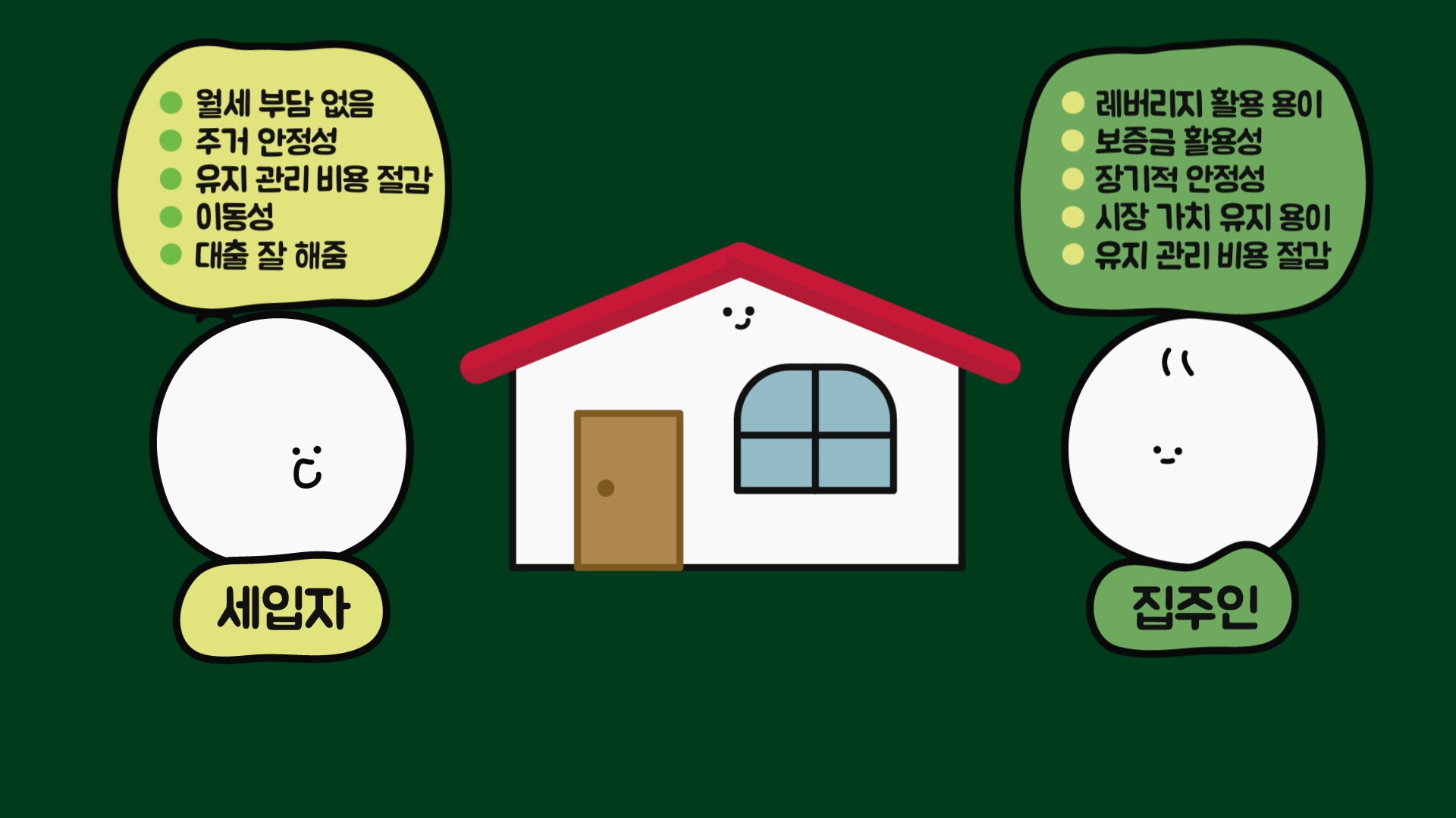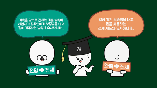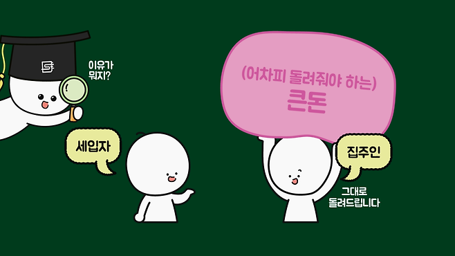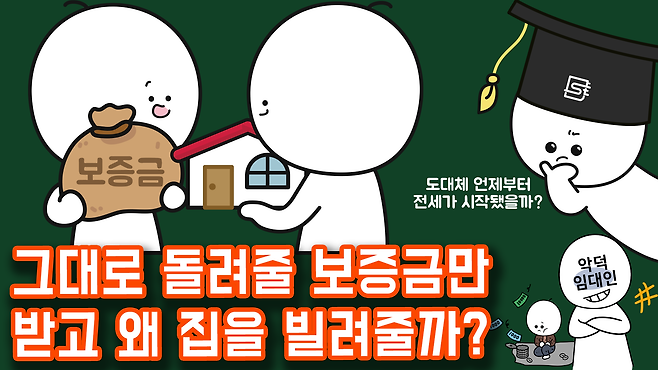 두 방식 모두 계약 기간이 끝나면 보증금을 돌려받는데, 얼핏 생각하기에 전세 제도는 꽤 이상합니다. 세입자는 무엇을 믿고 집주인에게 집값의 절반 가까이 되는 큰돈을 맡기는 것이고, 집주인은 계약 기간이 종료되면 받았던 그대로 돌려줄 보증금만 받고 집을 왜 빌려주는 걸까요?