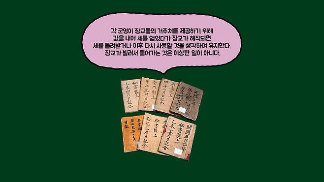 이 기록에 따르면 서울에 거주하는 장교에게 집을 제공하기 위해 군영이 세를 내고, 사용 목적이 끝나면 세를 다시 돌려주는 것을 확인할 수 있습니다. 또한, 무고죄로 처벌받은 죄인 최수만에게서 압수한 가옥에 세가 걸려 있어서 정부가 거주자에게 배상해주었다는 기록도 있습니다.