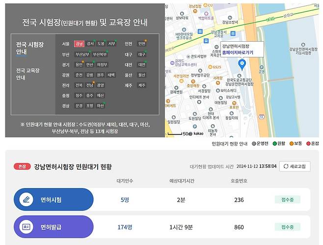또 지난해부터 제공 중인 '대기 현황 안내 서비스'는 안전운전 통합민원 홈페이지에서 확인할 수 있다.