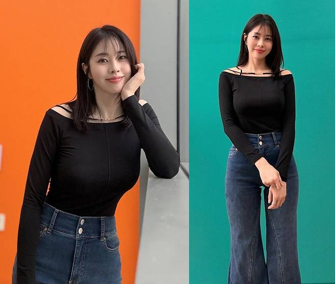 또, 서동주는 하이웨스트 와이드 핏 청바지를 착용해 캐주얼한 분위기를 자아냈습니다.
