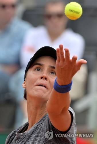 epa10638860 Anhelina Kalinina of Ukraine in action against Veronika Kudermetova of Russia during their Women's singles semi final match at the Italian Open tennis tournament in Rome, Italy, 19 May 2023. EPA/ETTORE FERRARI