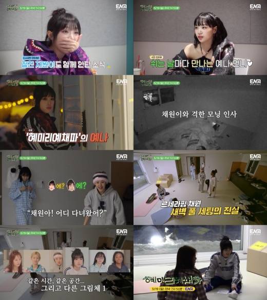 1박 2일 일정으로 인해 메이크업을 지운 '혜미리예채파' 멤버들의 리얼 민낯도 드러난다. 쇼케이스 이후 풀 메이크업 상태로 달려온 최예나는 "(나도) 화장을 지워야 할 것만 같은 느낌이다. 밸런스가 안 맞는다"고 말한다. 특히 리정은 "눈 떠보니 채원이가 풀 세팅이라 깜짝 놀랐다"며 최예나를 김채원으로 착각한 일화를 공개해 폭소를 안긴다. 혜리 역시 "둘이 닮았다"며 격하게 고개를 끄덕였고, 최예나는 "풀 세팅하면 헷갈려 하시는 분들이 있다"고 인정한다.