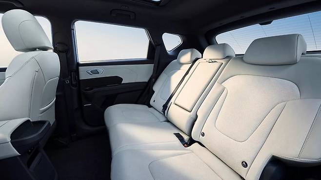 가장 눈에 띄는 건 실내다. 센터콘솔 왼쪽 끝에서 조수석 앞까지 이어지는 27인치 듀얼 스크린이 압도적인 존재감을 뽐낸다. 4K 해상도를 지원하는 이 거대한 스크린은 테슬라는 물론 중국 전기차 브랜드들도 주목할 만한 크기다. 여기에 운전석 정면에는 별도의 계기판 스크린까지 더해져 완전한 디지털 콕핏을 완성했다.