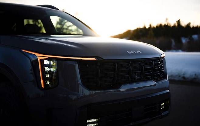 쏘렌토 풀체인지 예상도를 보면, 기존 쏘렌토의 모습과는 확연히 달라진, 기아의 최신 패밀리룩이 온전히 반영된 디자인을 확인할 수 있습니다. 이는 기아의 디자인 철학인 ‘오퍼짓 유나이티드(Opposites United)’를 기반으로 한 ‘스타 맵 시그니처 라이팅’이 전면부에 강렬하게 적용되었기 때문입니다. 이 디자인은 X축, Y축, Z축 3방향으로 길게 뻗은 독특한 DRL(주간 주행등) 램프를 통해 표현되며, 미래지향적이면서도 통일감 있는 기아만의 아이덴티티를 구축하고 있습니다. 기존 쏘렌토의 라이팅 디자인이 다소 빈약하다고 평가받았던 점을 고려하면, 이번 풀체인지는 이러한 단점을 완벽하게 보완하며 더욱 웅장하고 세련된 인상을 완성했습니다.