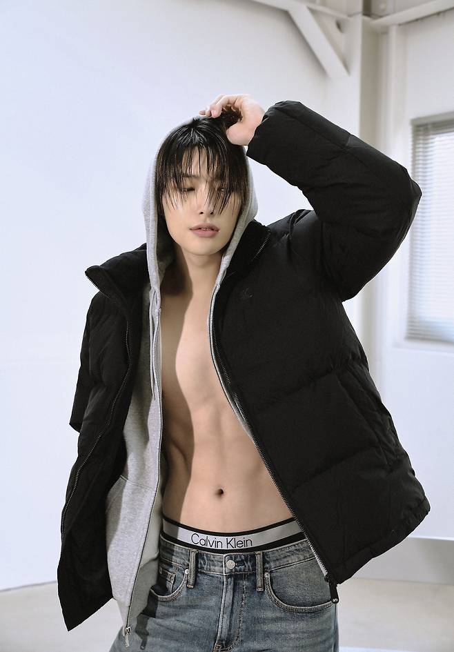 또 캘빈클라인 로고 밴드가 돋보이는 로우라이즈 드로즈에 미드블루 빈티지 데님, 그리고 아우터로 플리스 집업 후디와 다운 푸퍼 재킷을 더해 시크한 무드의 룩을 완성했다. 에이티즈 민기가 착용한 모든 제품은 캘빈클라인 공식 웹사이트에서 만나볼 수 있으니 참고할 것.