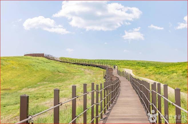 이 여름, 서산한우목장을 여행하신다면 꼭 걸어보셔야 할 곳이 바로 ‘서산한우목장길’입니다. 완만한 구릉에 따라 조성된 2.1km 무장애 데크길은 시원한 바람을 맞으며 걷기에 참 좋은 코스예요. 걷는 내내, 넓게 펼쳐진 초원 위에서 자유롭게 풀을 뜯는 한우들이 여유롭게 움직이고, 하늘을 가로지르는 구름은 그 위에 멋진 배경이 되어줍니다.