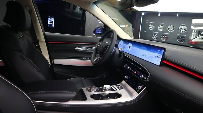 특히 별도의 옵션 선택을 하지 않아도 GV70의 실내 디자인은 충분히 멋스럽고 매력적인 실내 디자인을 자랑하는데 여백의 미를 바탕으로 한국적인 아름다움과 여유로움을 조화롭게 담아낸 GV70 실내 디자인은 27인치 와이드 디스플레이와 앰비언트 라이트 등은 미래지향적인 공간 무드를 연출시키며, 세련된 신규 디자인 스트이렁 휠은 신규 엠블럼의 조화가 돋보이며 한층 스포티한 느낌마저 들게하는데 여기에 8각 형상의 유리 재질로 디자인해 마치 정교하게 세공한 보석을 얹은 듯한 고급스러움과 우수한 조작감을 제공하는 제네시스 통합 컨트롤러와 전자식 변속 다이얼(SBW)은 특별함을 더했습니다.