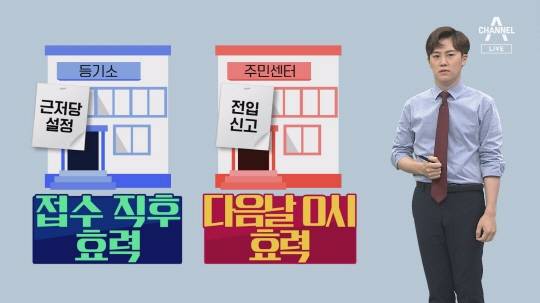 또, 근저당권 설정은 등기소 접수 직후 효력이 생기지만 전입신고는 다음날 자정부터 효력이 생깁니다.
