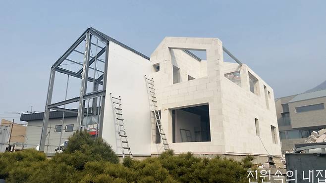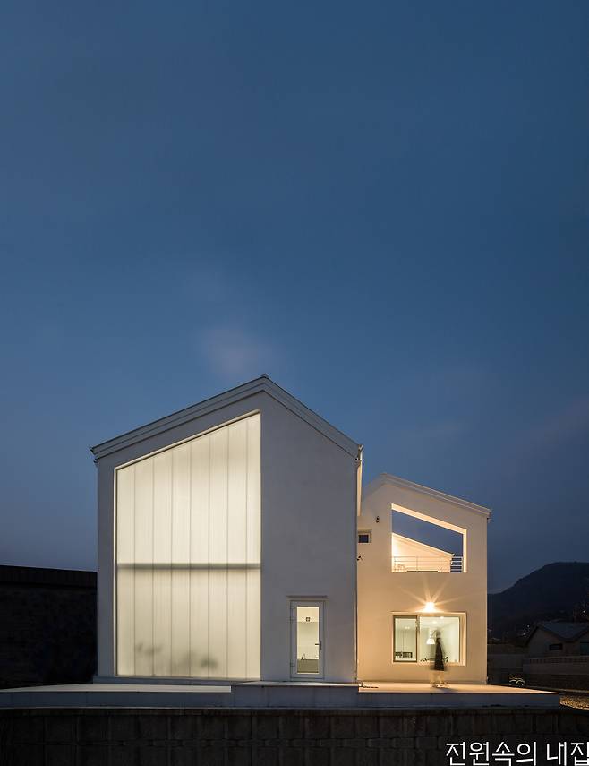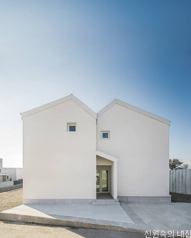 H빔 구조로 지어 심플하면서도 따뜻한 분위기를 발산하는 하얀 집.