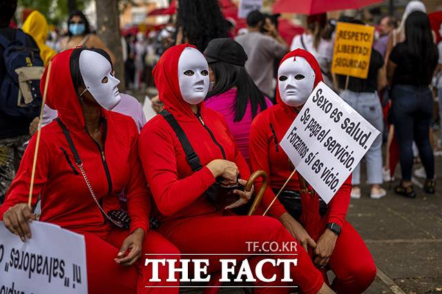 "성 노동자에 대한 폭력".. 스페인, 성매매 근절법 반대 시위 [TF사진관]