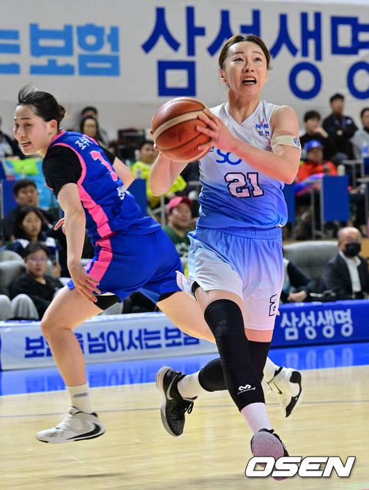 [OSEN=용인, 조은정 기자]14일 용인실내체육관에서 하나은행 2024~2025 여자프로농구 정규리그 용인 삼성생명 블루밍스와 인천 신한은행 에스버드의 2라운드 경기가 열렸다.